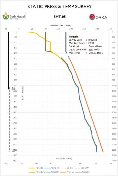 昨天,開山總公司收到印尼SMGP項(xiàng)目公司關(guān)于T平臺(tái)T-05井測試報(bào)告,在2230米處錄得資源層最高溫度達(dá)到298℃,之前錄得的最高資源溫度為A107井的278℃。